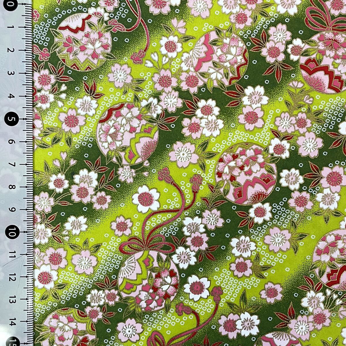 友禅和紙 華やか毬と桜 緑色のぼかし 大判 菊判 約63x93cm 千代紙 Yuzen Dyeing