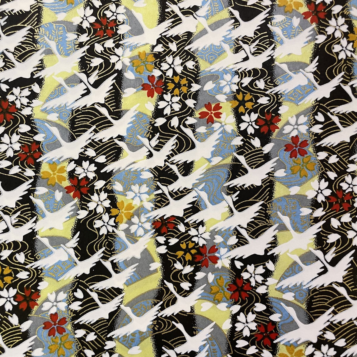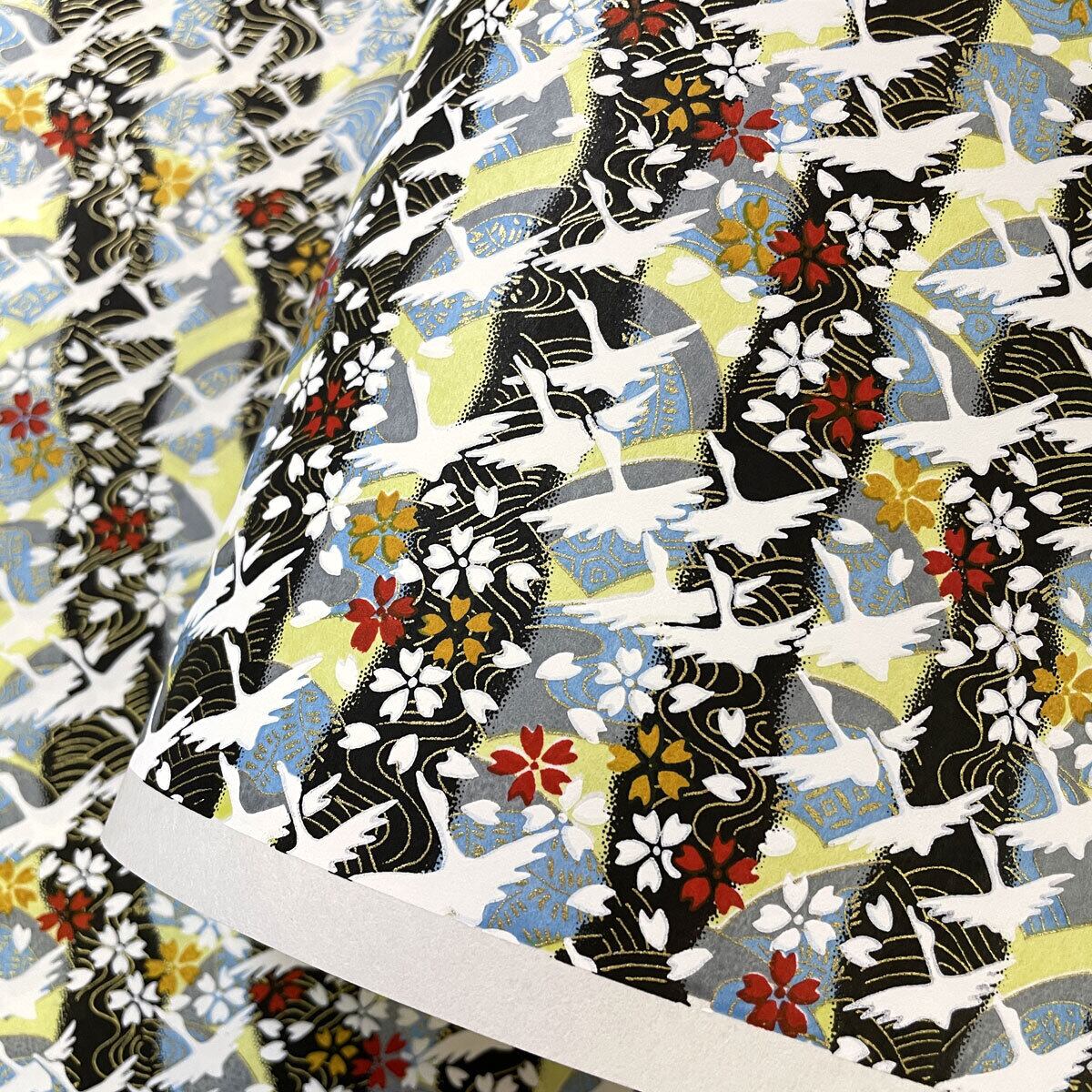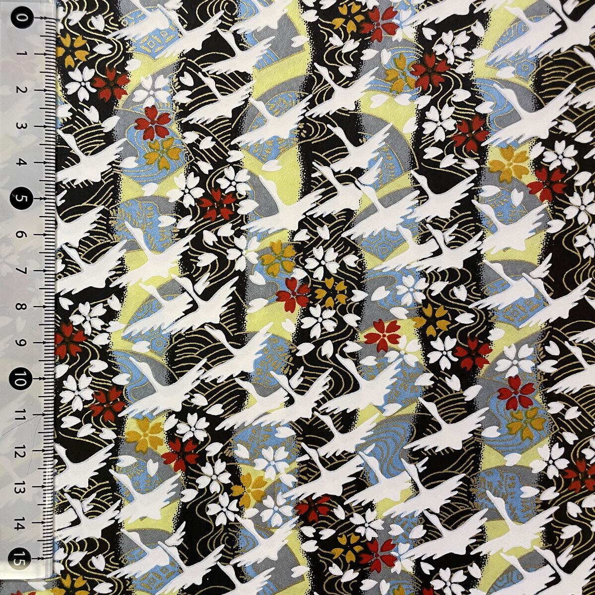 華やかな友禅和紙 紺の縞 飛び立つ鶴 扇 大 判 約63x 93cm 千代紙 Yuzen Dyeing 83633214