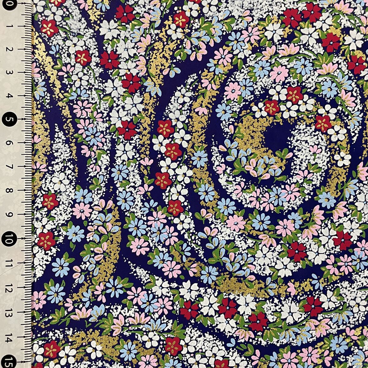 友禅和紙 渦巻き風に小花が並ぶ 上品 可愛い 紺 紫 菊判 大判 約63x93cm 千代紙 Yuzen Dyeing
