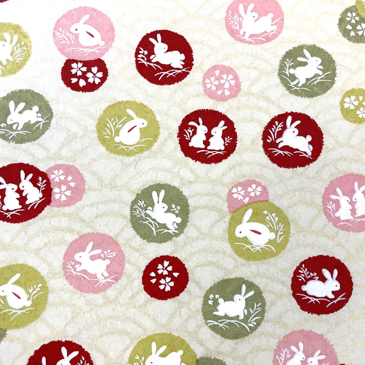 友禅和紙 丸に可愛いうさぎ 金の青海波 薄いベージュ地 クリーム色 大判 約63x93cm 千代紙 YUZEN dyeing 84123006