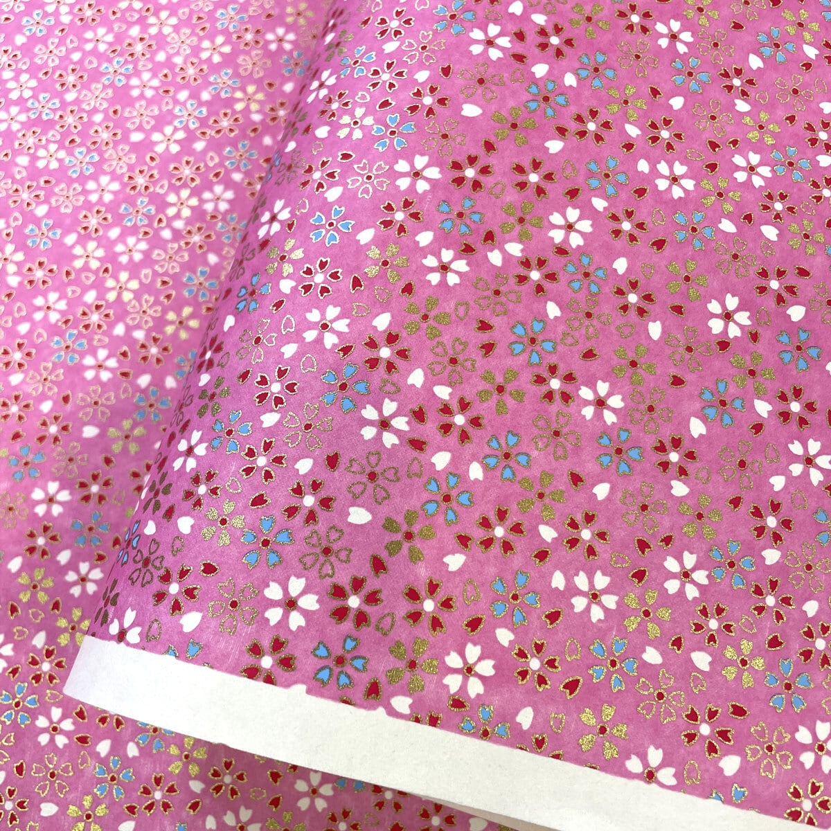 友禅和紙 華やか 金の縁取りの桜 ちらし 鮮やかピンク 桃色 大判 約63x93cm 千代紙 YUZEN dyeing 84123488