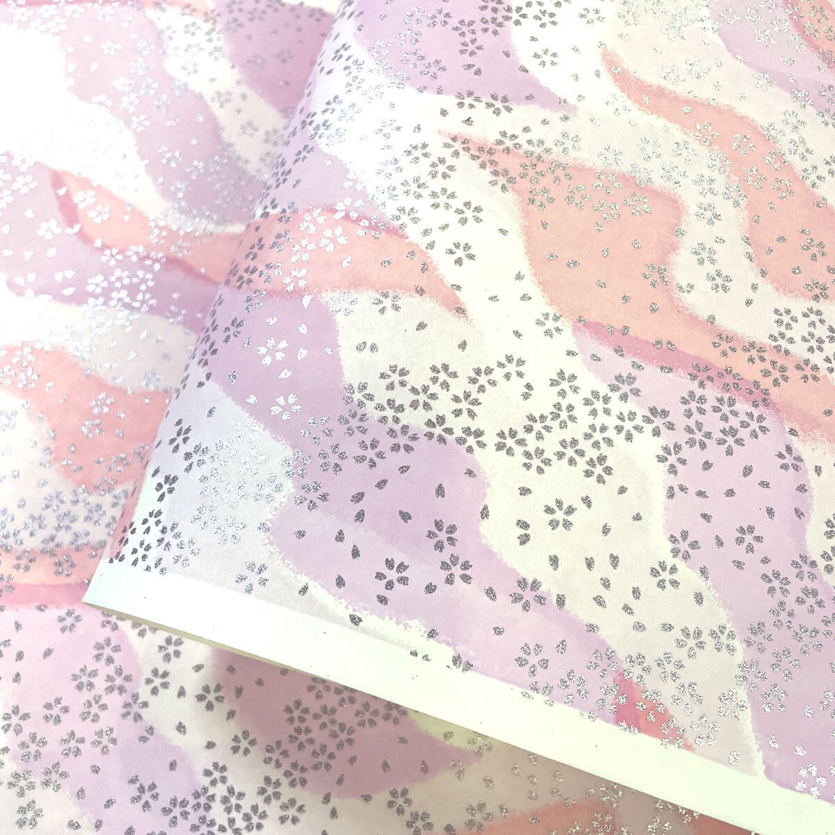 友禅和紙 切り継ぎ風ぼかしに銀の小桜ちらし シルバー ピンク系 優しい 上品 大判 約63x93cm 千代紙 YUZEN dyeing