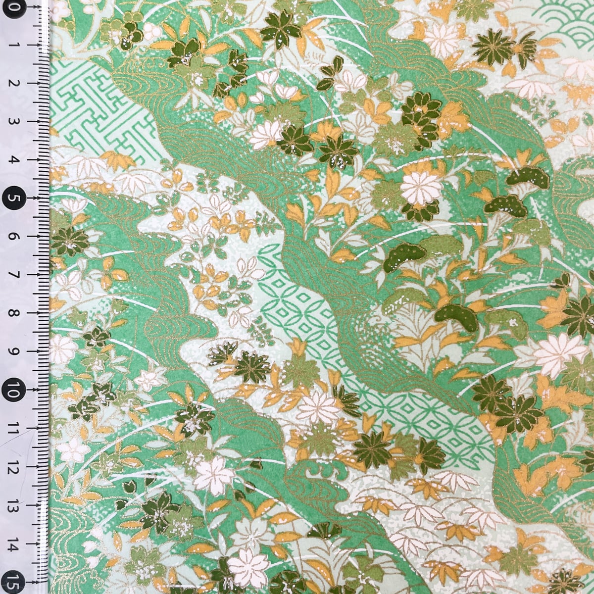 友禅和紙 華やか古典柄 切り継ぎ風 秋の草花 緑 大判 約63x95㎝ Yuzen Dyeing 千代紙