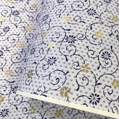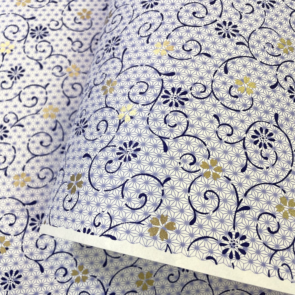 友禅和紙 麻の葉の背景に金の桜 青の唐草 水色 ブルーグレー 大判 約63x95㎝ Yuzen Dyeing 千代紙