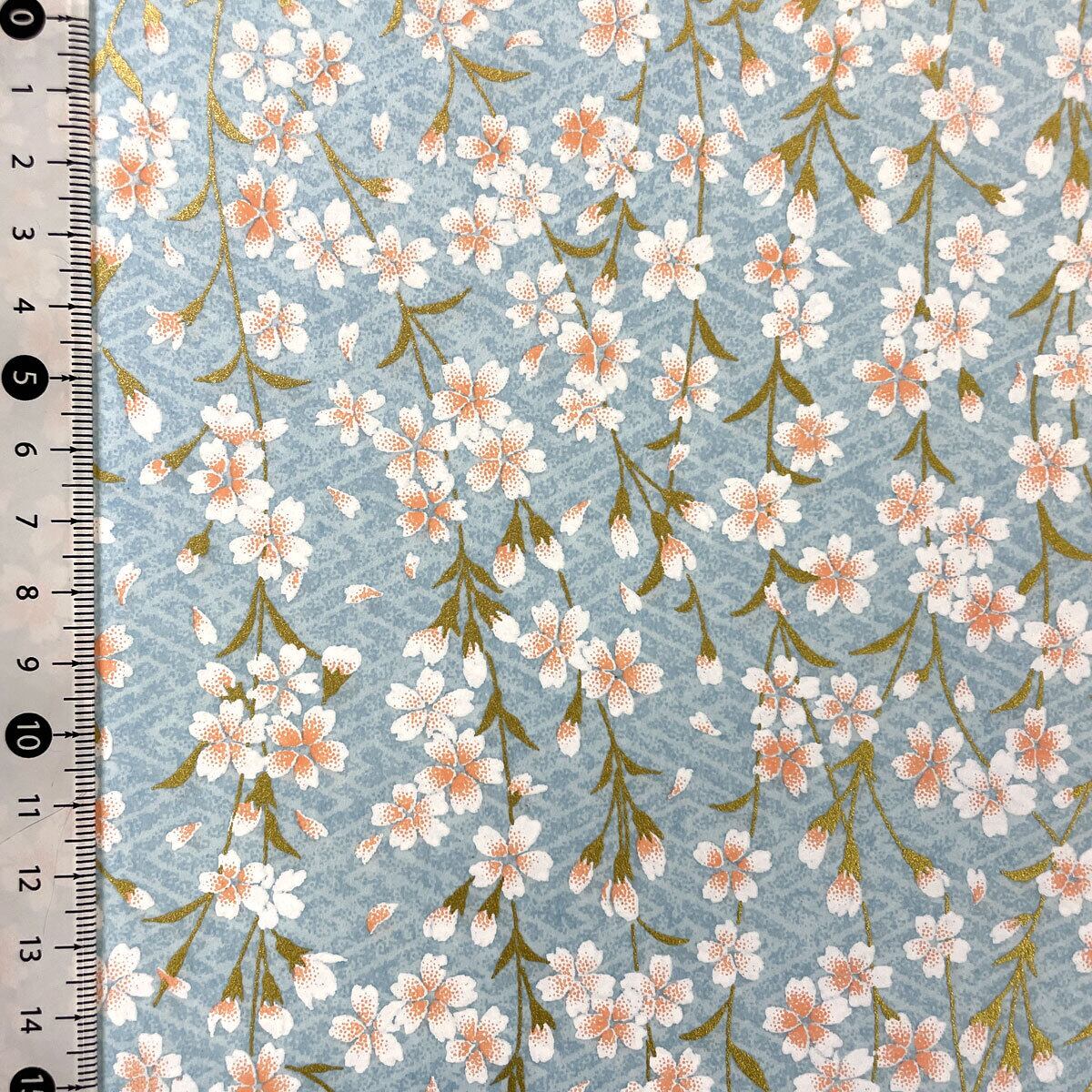 華やかな友禅紙 紗綾型に枝垂れ桜 水色 大判 約63x93cm 千代紙 Yuzen Dyeing