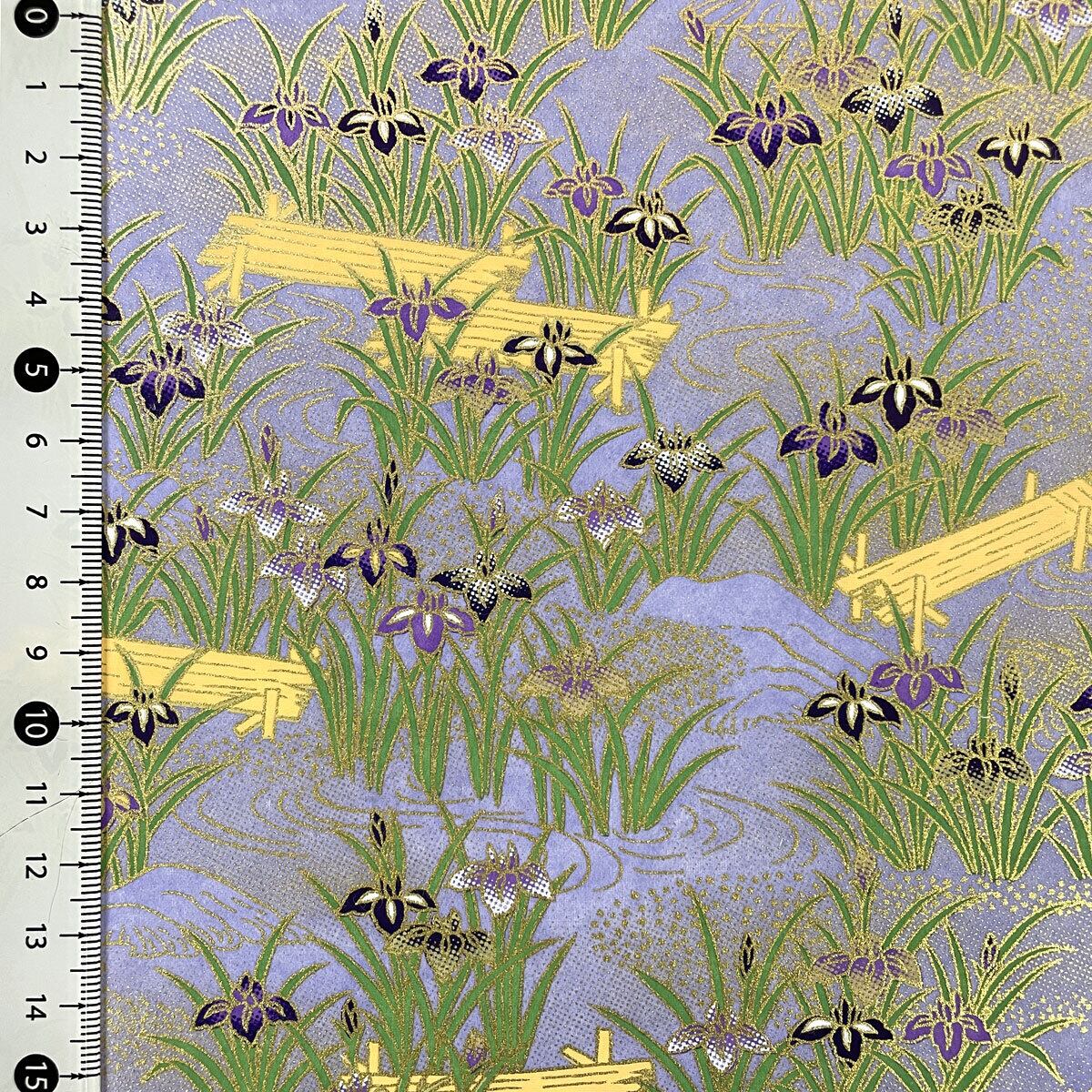 友禅和紙 華やか 菖蒲園 端午の節句 青 藤色 黒 大判 菊判 約63x93cm 千代紙 Yuzen dyeing