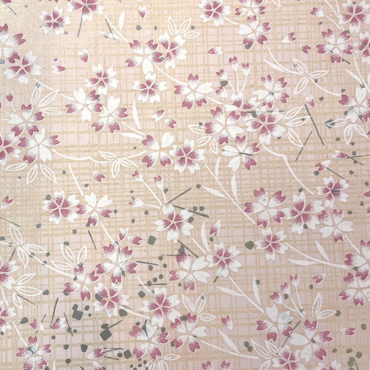 友禅和紙 華やかな桜 桃色地に金の格子 チェック 大判 約63x93cm 千代紙 Yuzen dyeing
