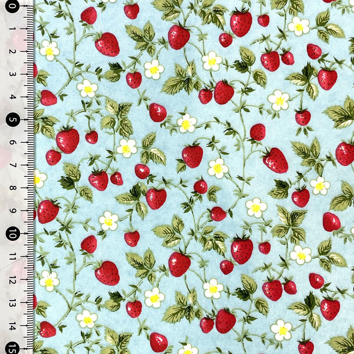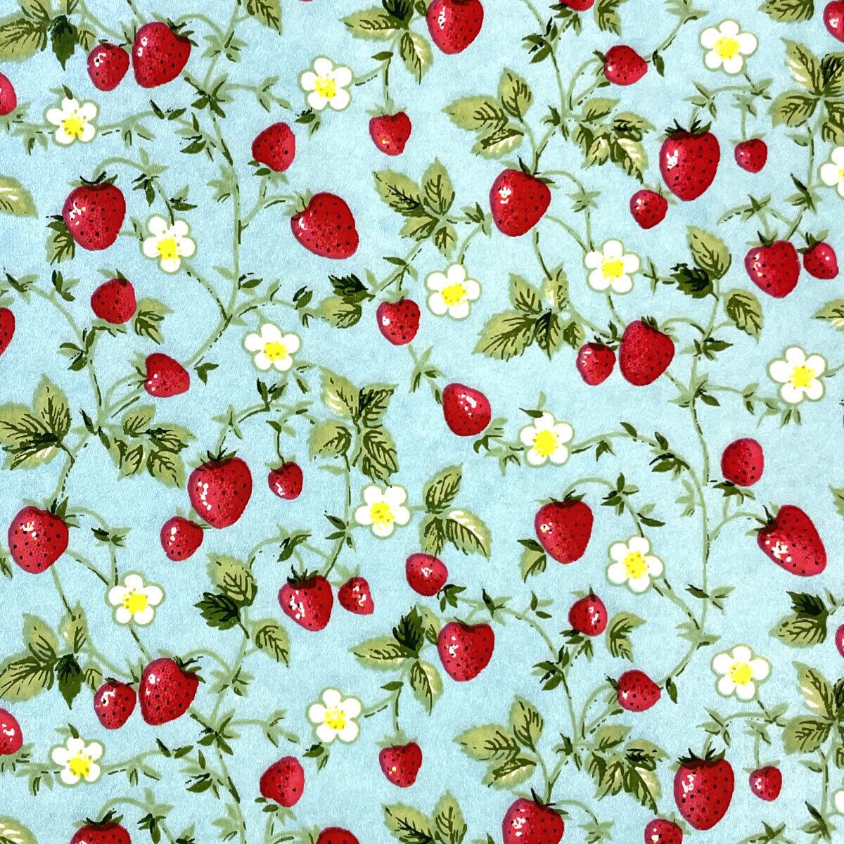 洋風柄 華やかな友禅和紙 いちご柄 水色 ワイルド ストロベリー 大判 約63x93cm 千代紙 YUZEN dyeing