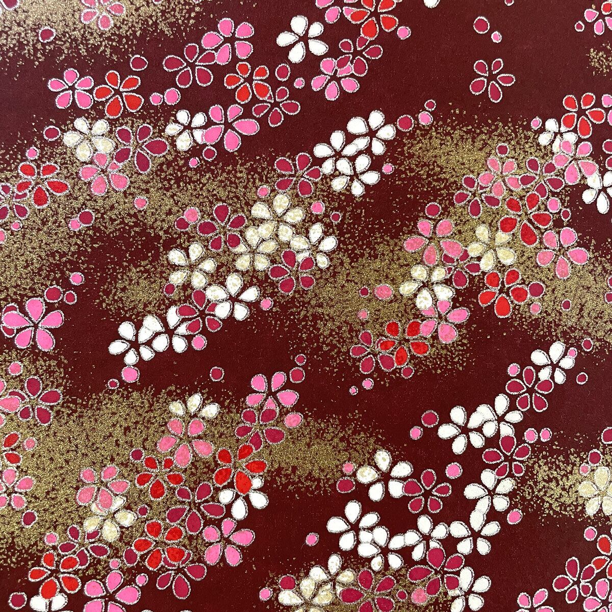 友禅和紙 臙脂色に金雲 小花 ワイン色 赤紫 大判 約63x93cm 千代紙 YUZEN Dyeing