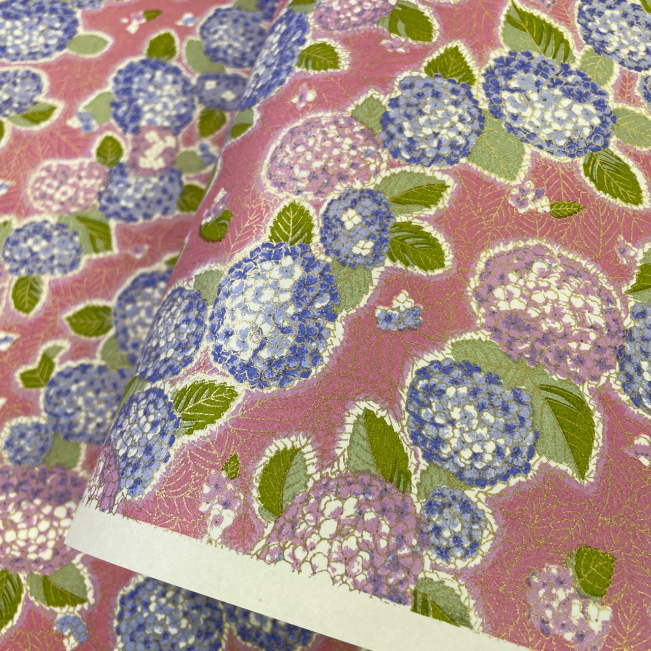 華やかな友禅紙 YUZEN dyeing さわやか 紫陽花 アジサイ 桃色地 ピンク 大判 約63x95㎝ 90666115