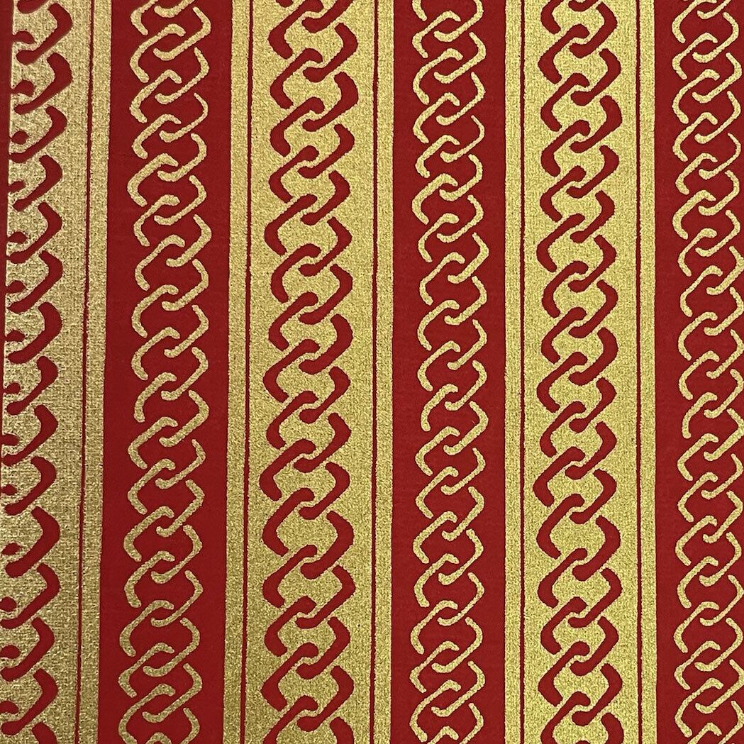 金色が華やかな加賀友禅 和紙 吉原繋ぎ 赤 菊判 大判 約63x93cm KAGA YUZEN Dyeing