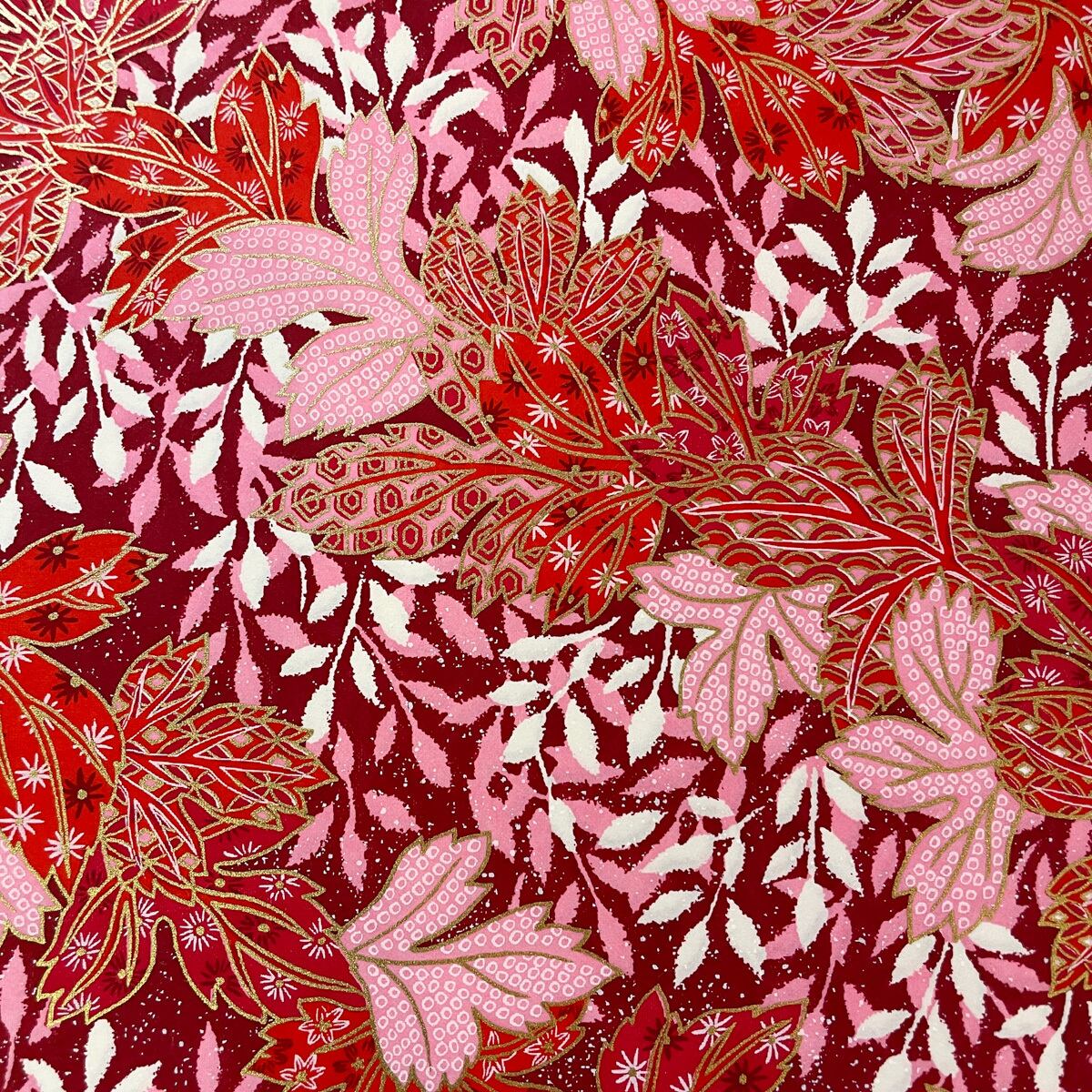 友禅和紙 華やか リーフ柄 赤 ワイン色 大判 約63x93cm 千代紙 YUZEN dyeing