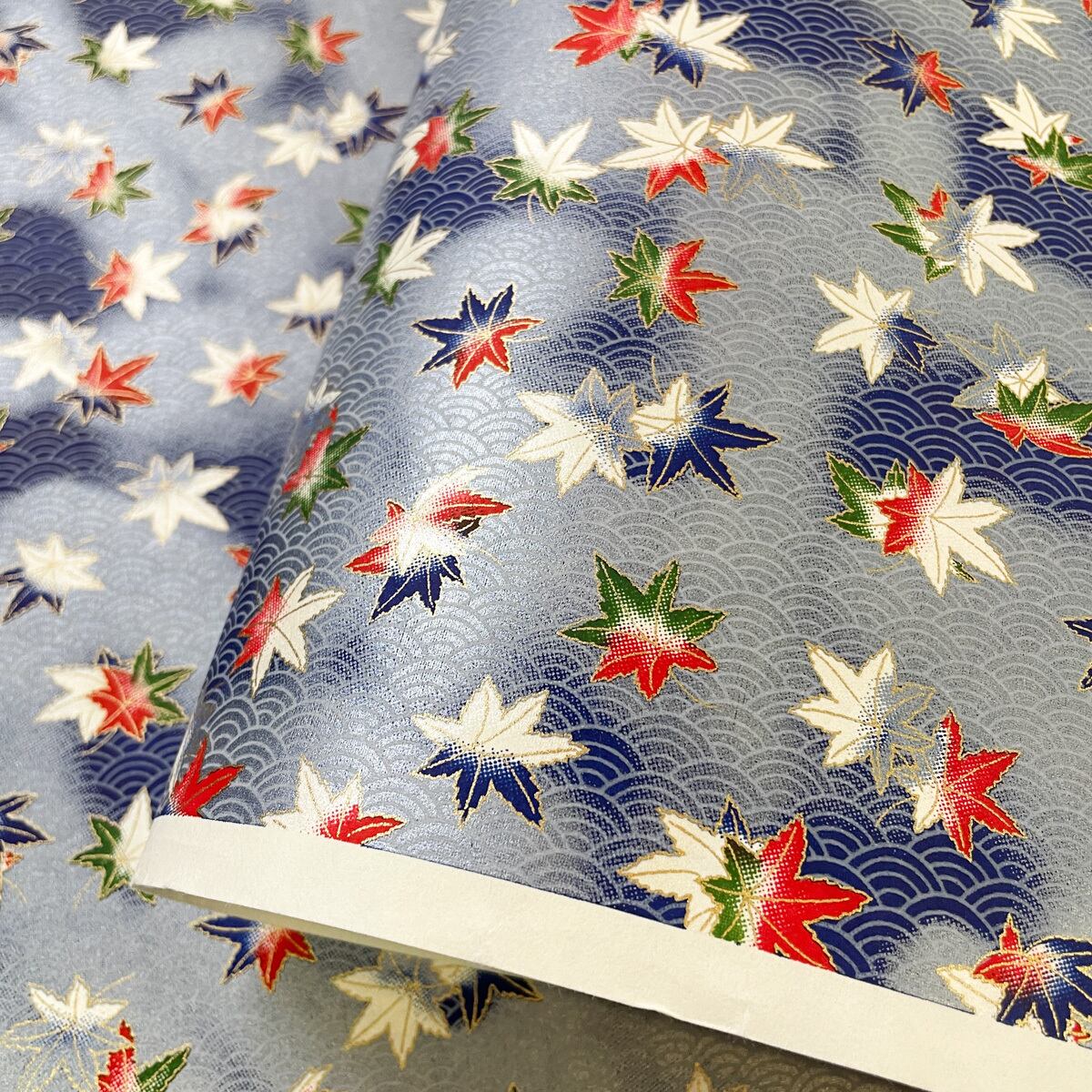 華やかな友禅和紙 青海波に紅葉 水色と青のぼかし 大判 約63x93 cm 千代紙 YUZEN dyeing