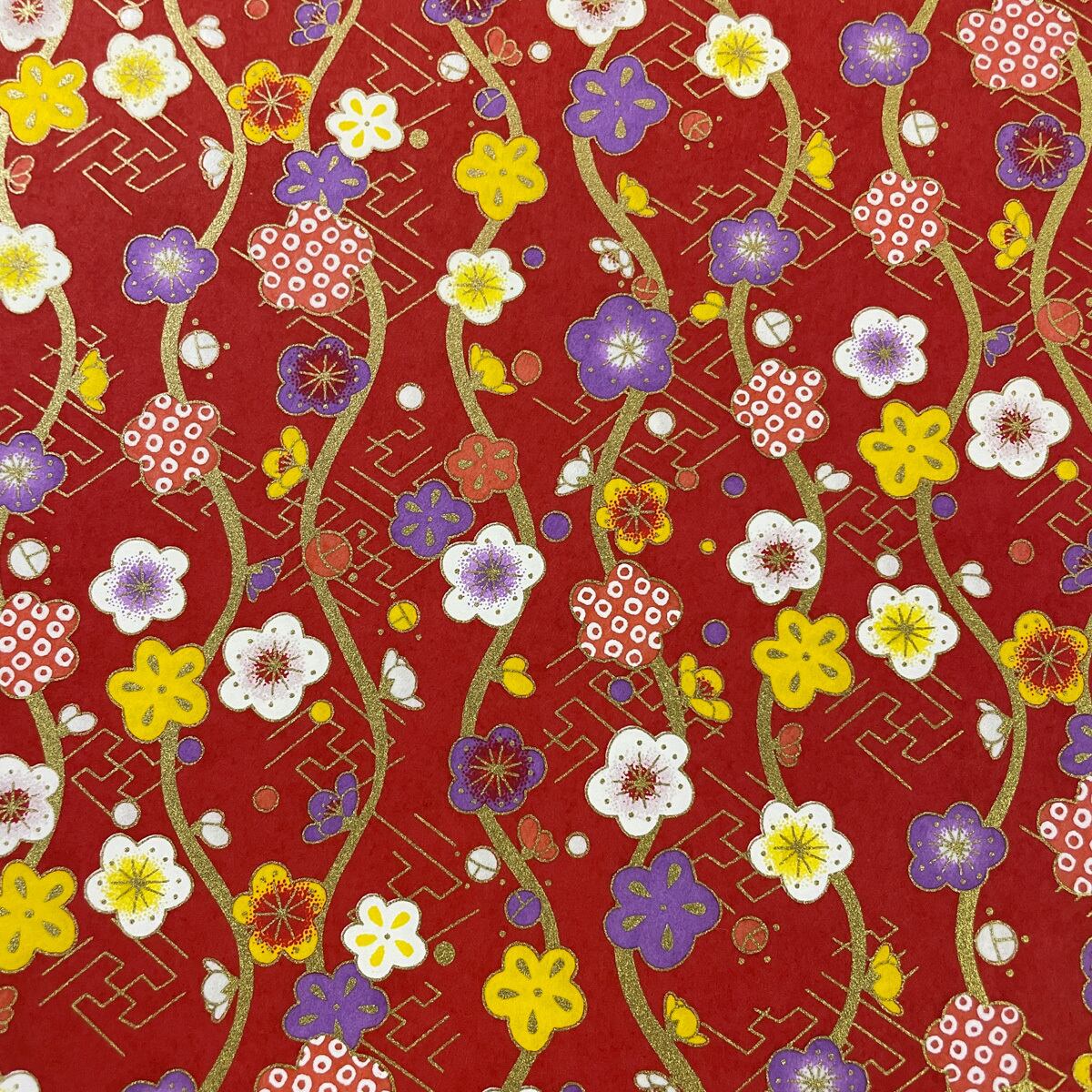 友禅和紙 立涌に梅 紗綾型 赤地 大判 約63x93cm 千代紙 YUZEN dyeing