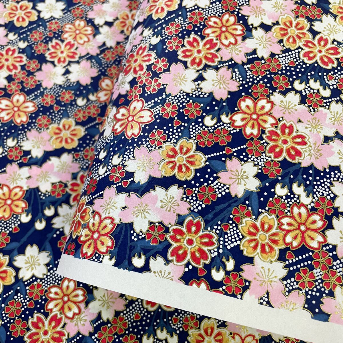 友禅和紙 華やかなしだれ桜とかわいい蕾 紺 青 大判 約63x93cm 千代紙 YUZEN dyeing
