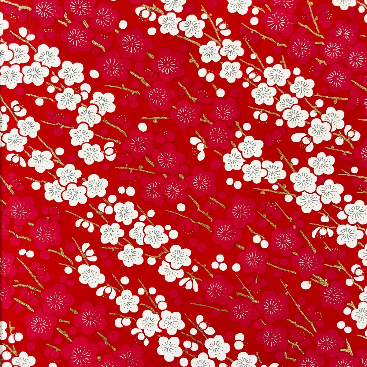 友禅和紙 華やか 赤地に斜め紅白梅 赤の梅 紅梅 菊判 大判 約63x93cm 千代紙 Yuzen Dyeing