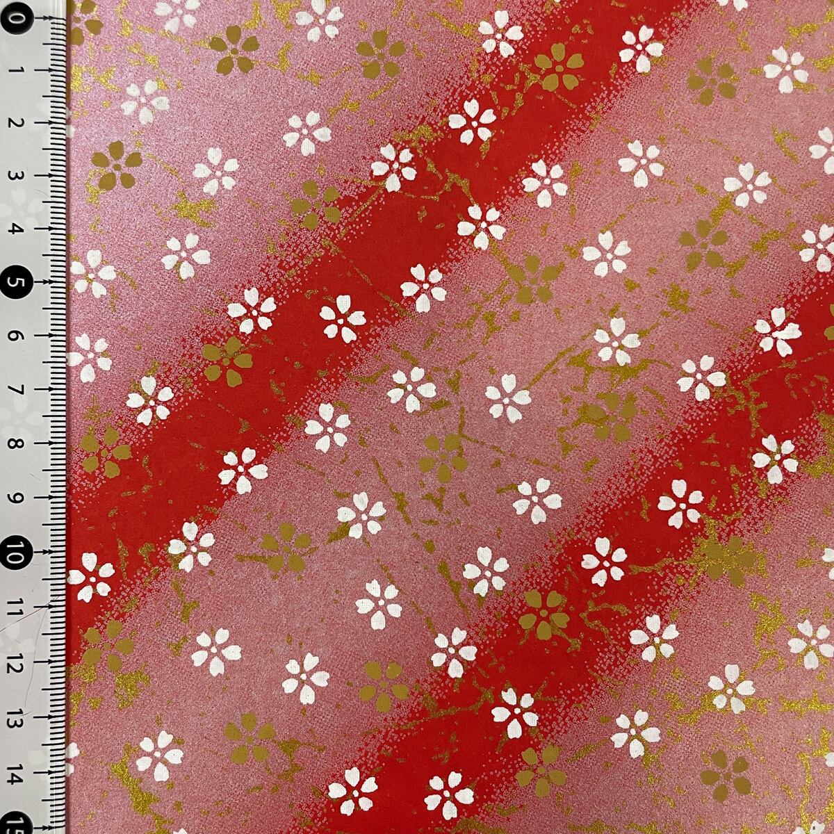 友禅和紙 華やか 赤と銀のぼかしに氷割紋様 桜ちらし 大判 菊判 約63x93cm 千代紙 Yuzen Dyeing