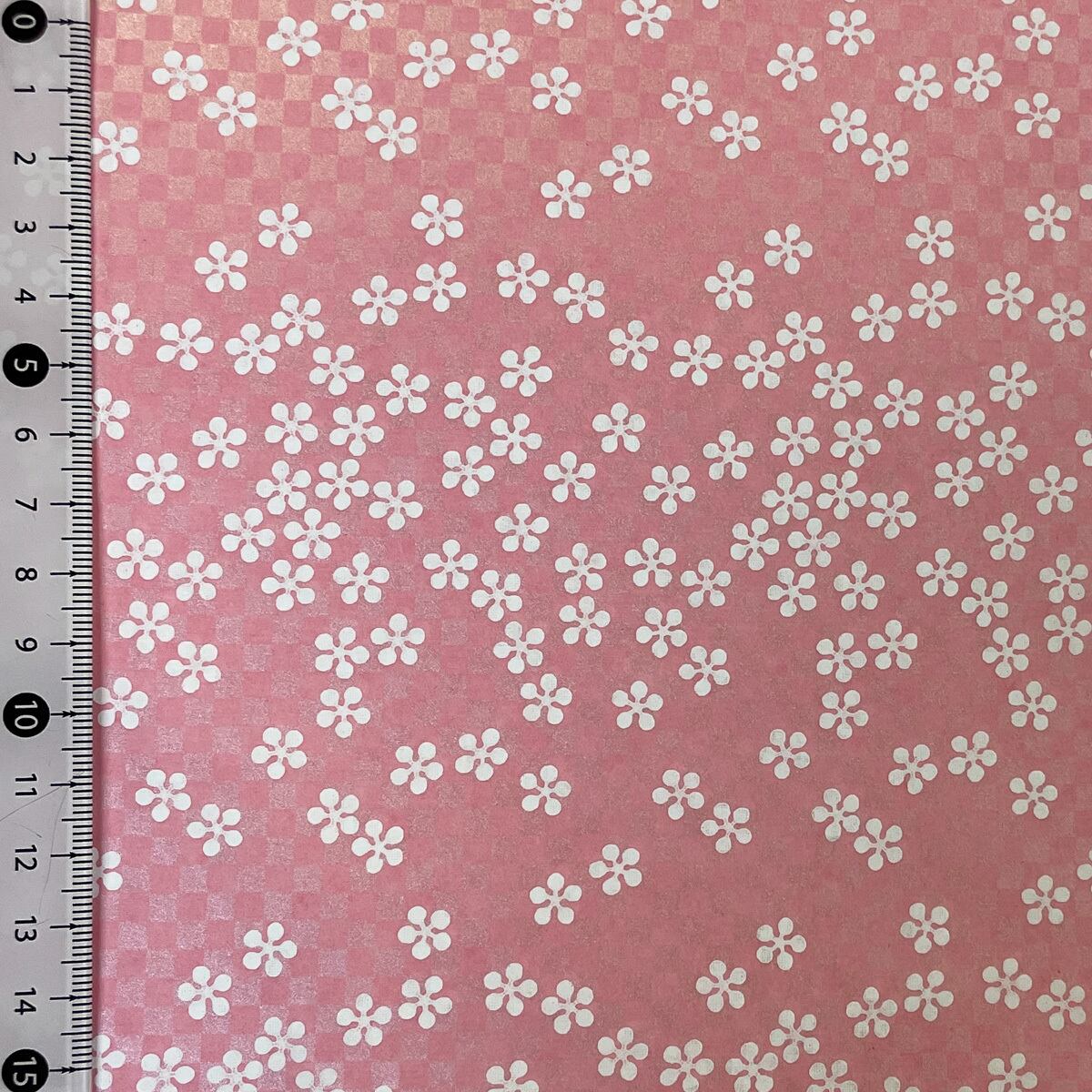 友禅和紙 市松の地模様に利休梅 桃色 ピンク 約63x93cm 千代紙 Yuzen Dyeing
