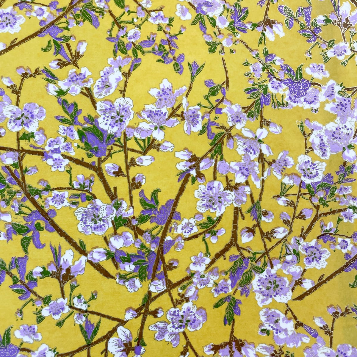 華やかな友禅紙 桃の花 桃の木 黄色 梅 桜 大判 約63x93cm 千代紙 YUZEN dyeing