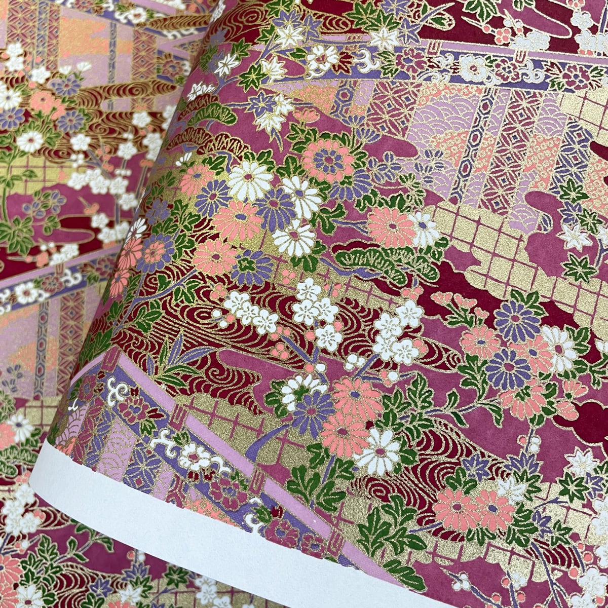 友禅染の着物のような華やかな柄の和紙です。