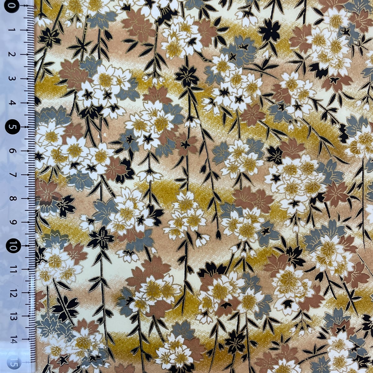 友禅和紙 茶系のぼかしに枝垂れ桜 黒 グレー 大判 約63x93cm 千代紙 YUZEN dyeing