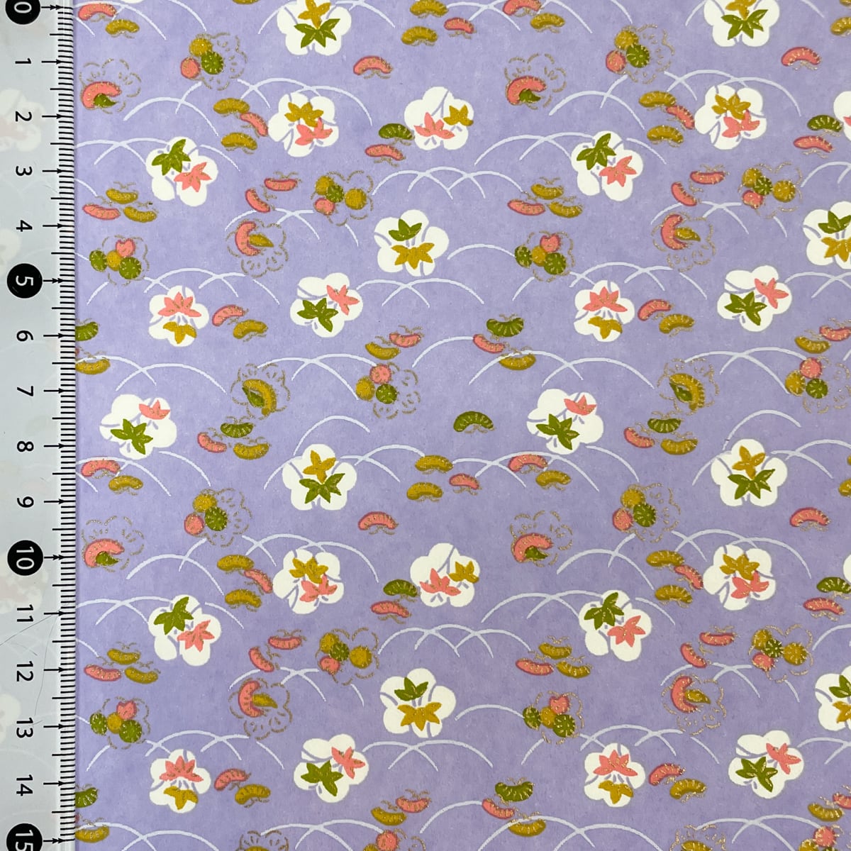 友禅和紙 露芝にかわいい松竹梅 藤色 大判 約63x93c m 千代紙 YUZEN dyeing