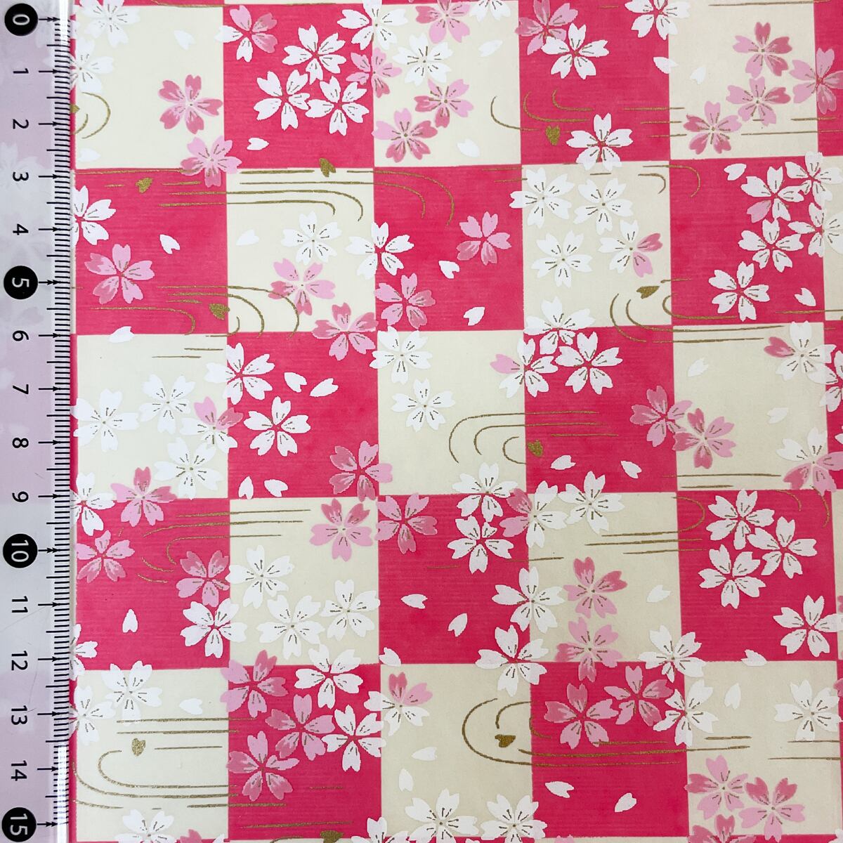 友禅和紙 牡丹色の市松 水面に桜 大判 約63x93cm 千代紙 Yuzen dyeing